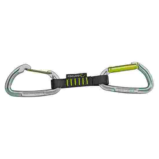 Idealerweise ist der seilführende karabiner durch ein fixierungsgummi fixiert und leicht gebogen, das erleichtert dir das einklippen des kletterseils.